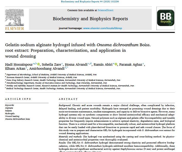 Gelatin-sodium alginate hydrogel infused with Onosma dichroanthum Boiss. root extract: Preparation, characterization, and application in wound dressing